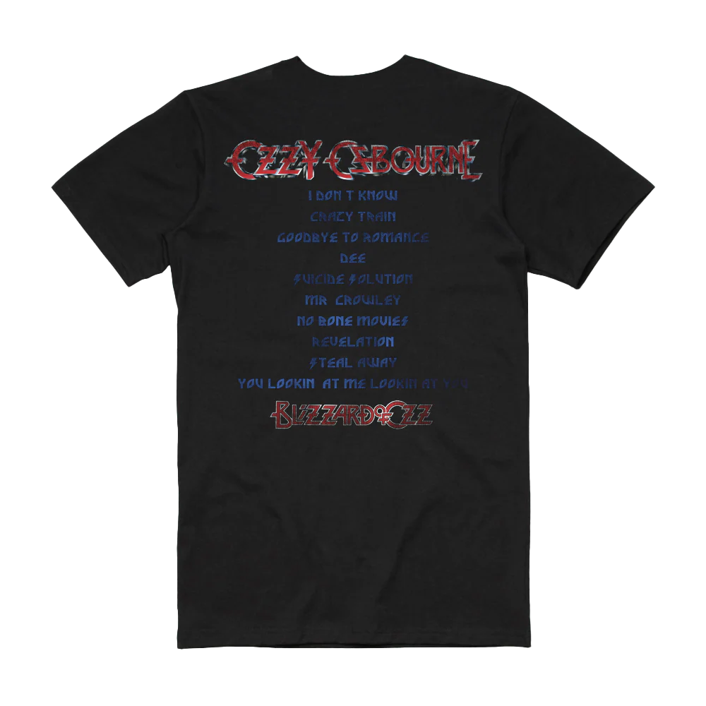Celebrate the album that started it all with the official "Blizzard of Ozz" Tracklist Tee. Featuring the legendary cover art on the front and the complete tracklist on the back, this tee pays tribute to Ozzy’s ground-breaking 1980 solo debut.